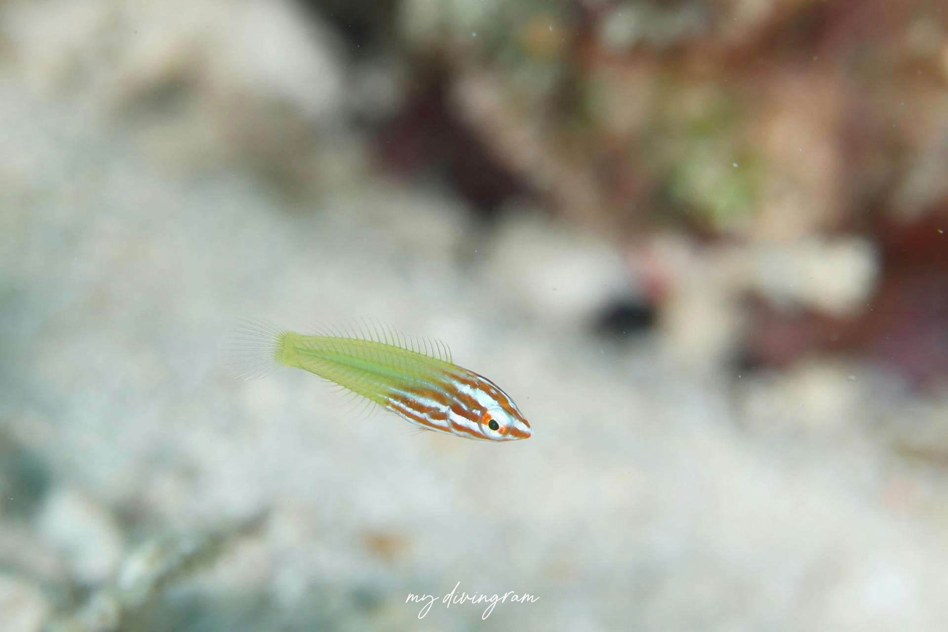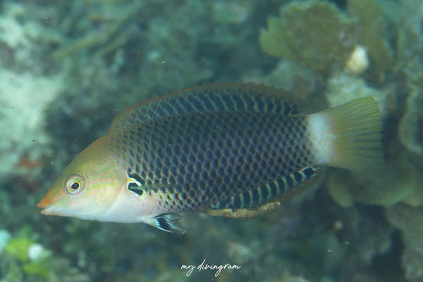頭部と尾鰭が白っぽく残りは暗色の海外産のホンベラ属です。