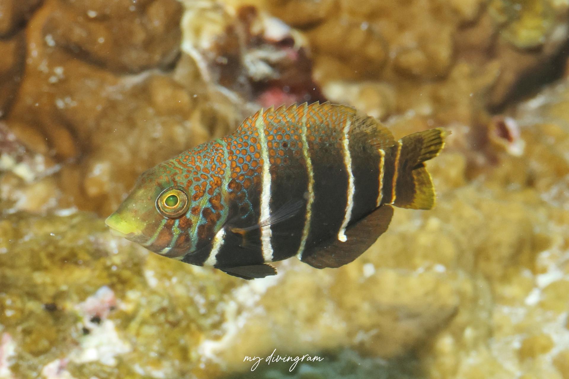 シマタレクチベラの幼魚です。上目遣い、かわちい。