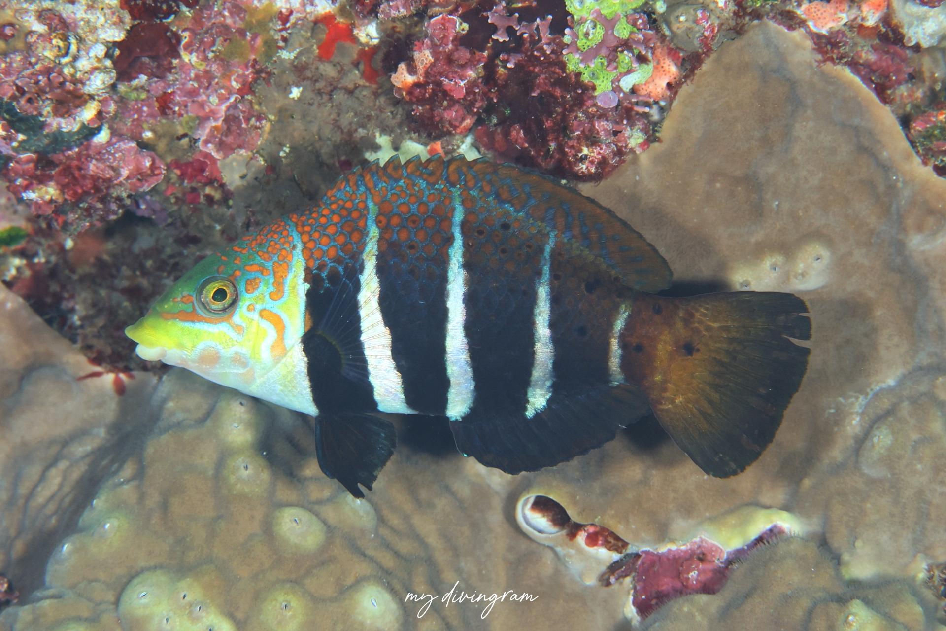 幼魚の頃からシマシマのタレクチベラです。