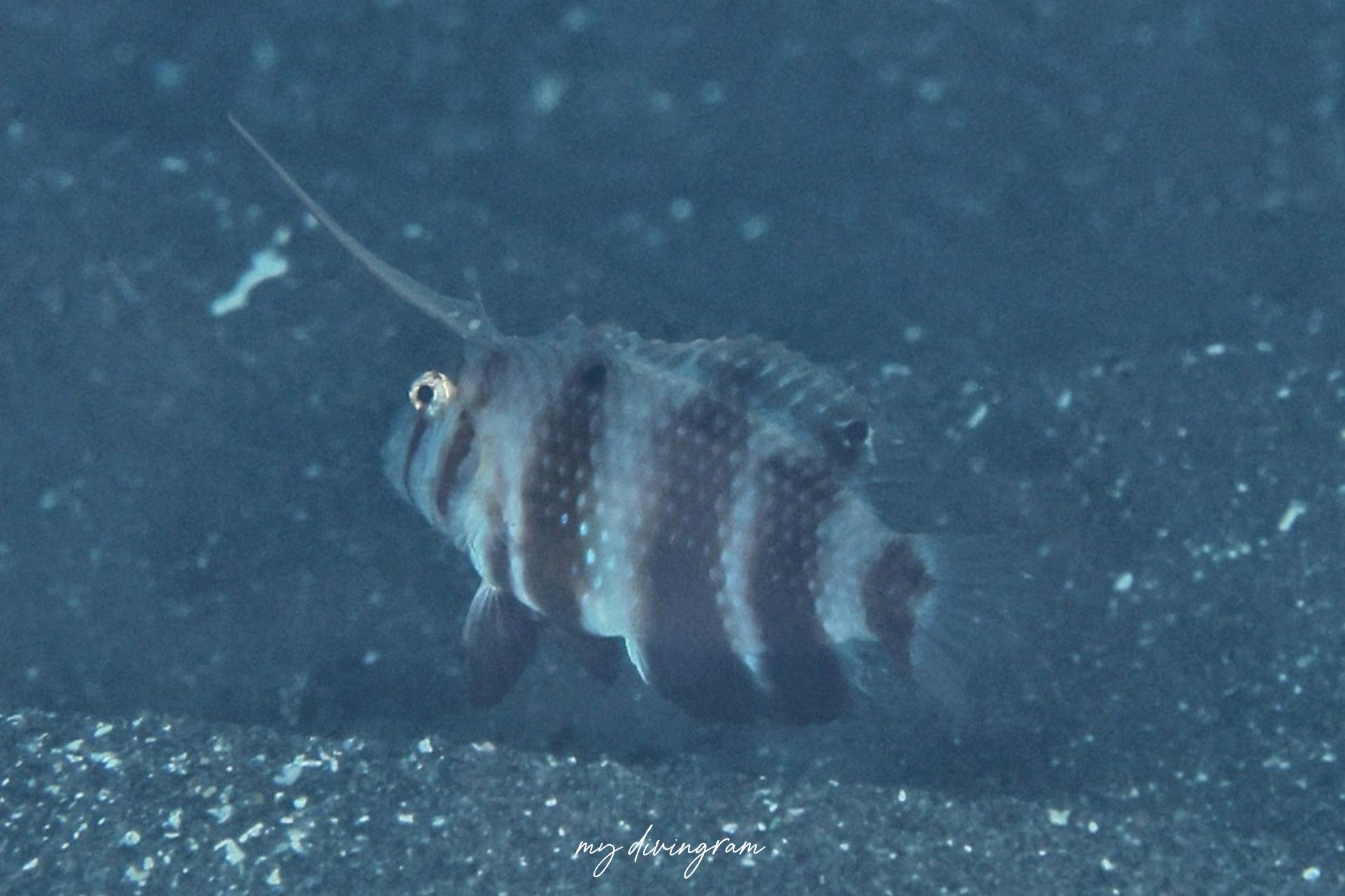 幼魚はツノの先にフックがないことや、眼を通る垂線が1本 (ホシは垂線1本+斜め後方に2本) なことで見分けられます。