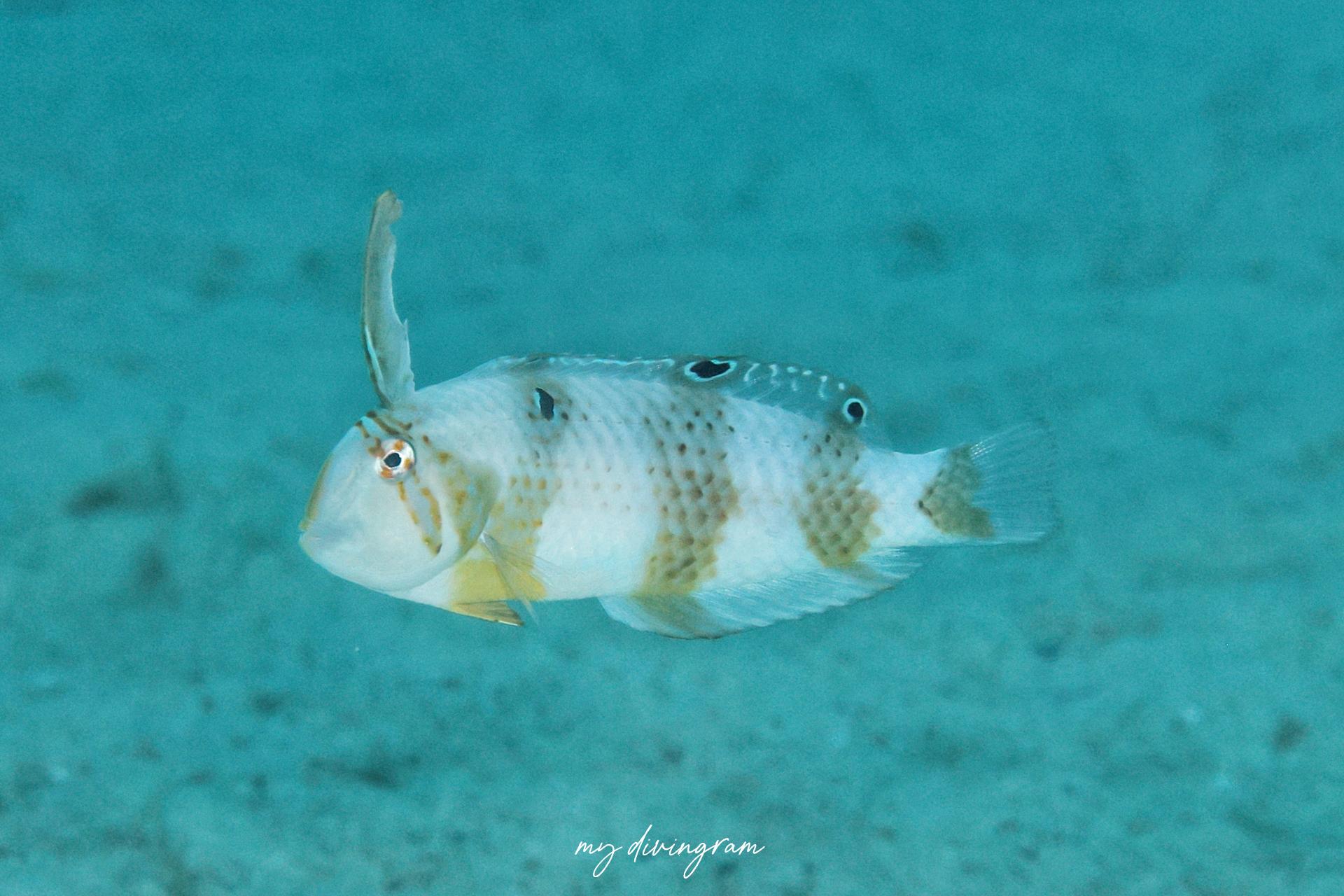 幼魚に関しては伸長した背鰭の形で見分けることができ、ホシテンスは先端がフックのように折り返っているのに対し、テンスは尖っています。